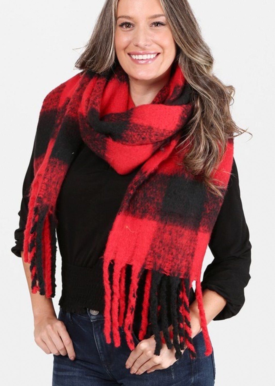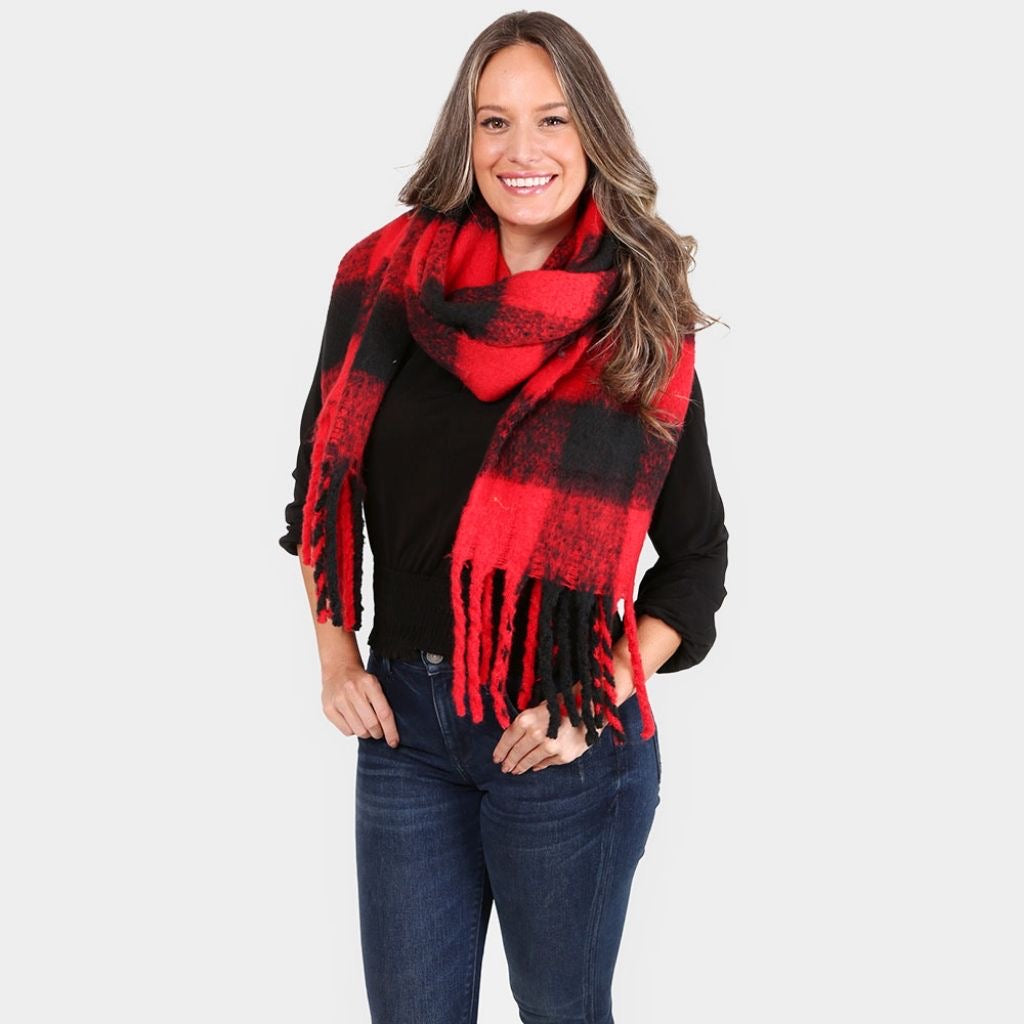 Bufanda gruesa ultrasoft. Estampado de cuadros rojos y negros