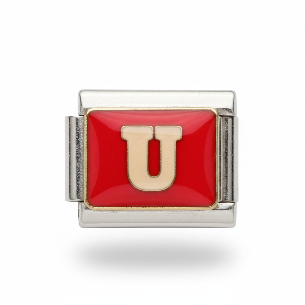 Charm Letra U fondo rojo