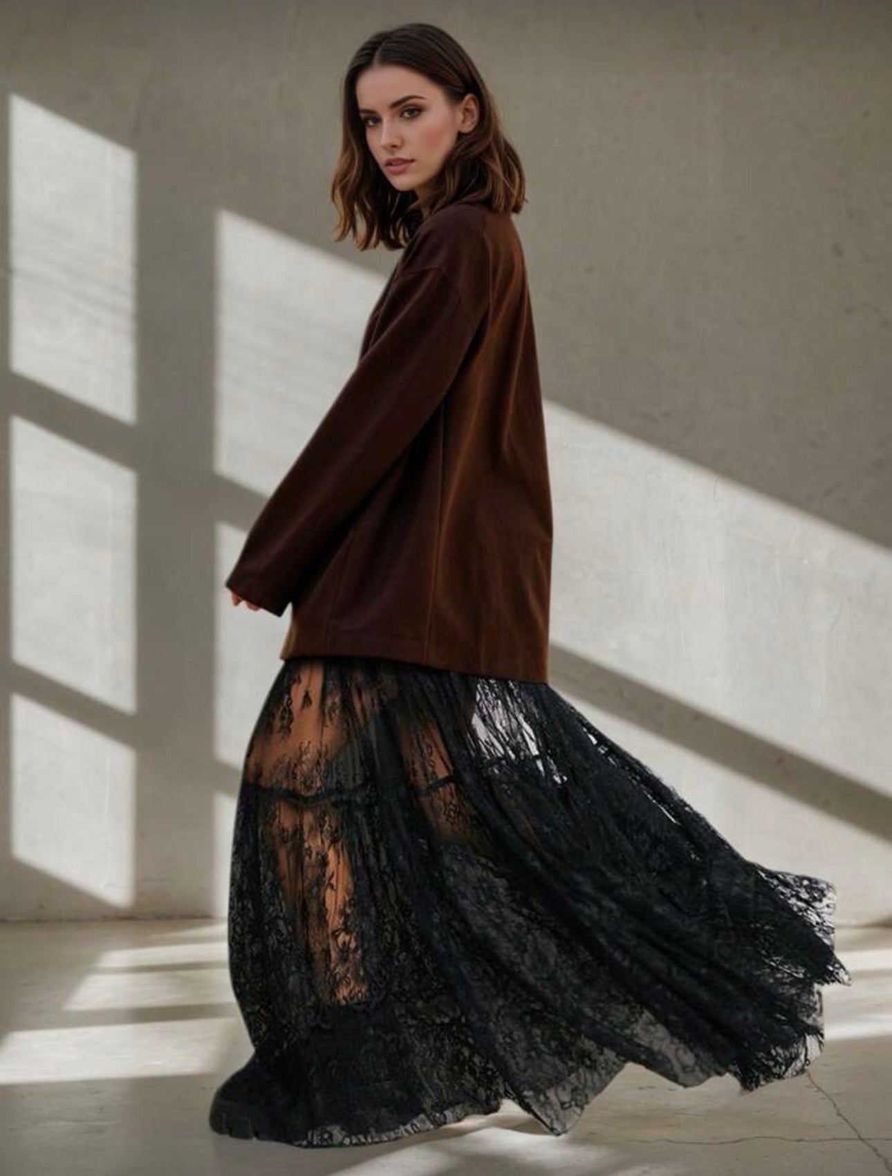 Falda encaje negra