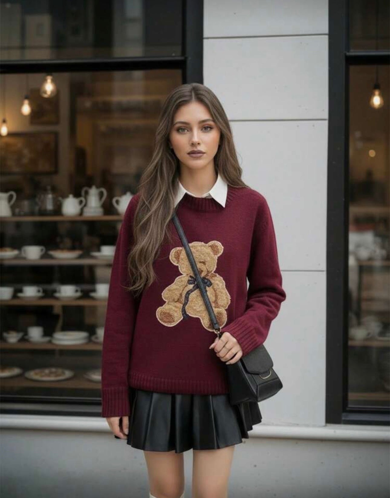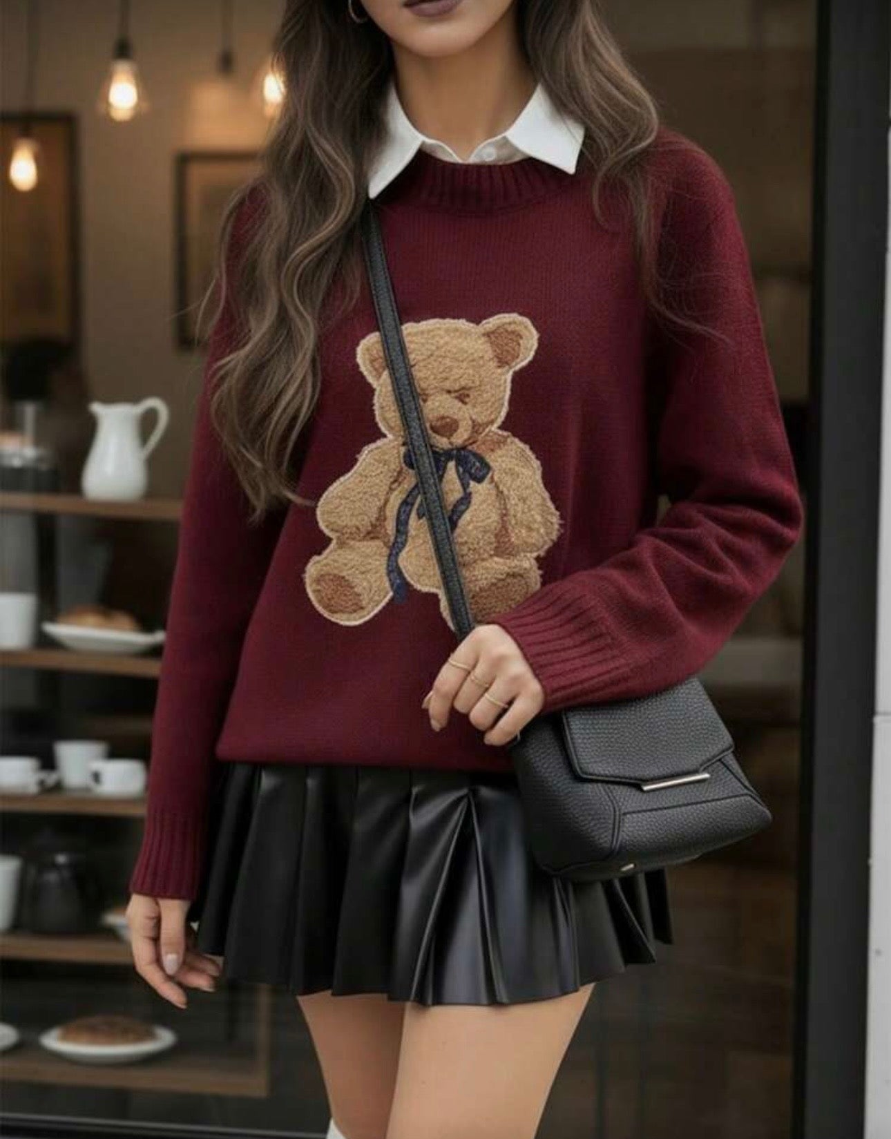 Suéter teddy burdeos